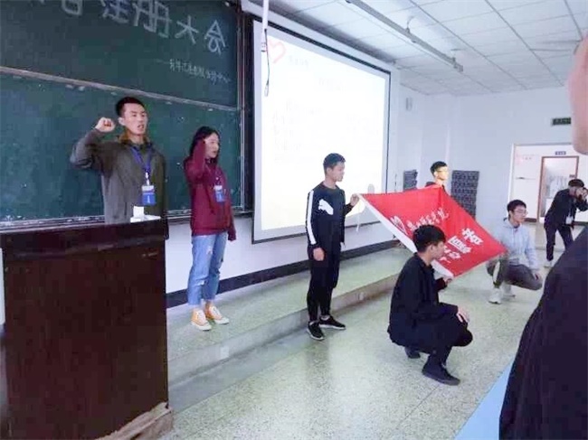 最后,全体起立,迎青年志愿者旗,由青年志愿者新生代表上台带领全体同学宣读“当我举起右手宣誓的那一刻,我就做好了奉献的准备”的誓言,宣誓完毕,本次青年志愿者大会圆满结束。