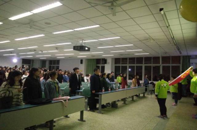 在晚上7点整,大会准时开始。首先由主持人银俊辉介绍了本次大会的出席嘉宾及领导。紧接着,开始大会第一项议程:迎志愿者旗,奏唱志愿者歌。全体出席人员,怀着饱满的热情,响亮的唱起志愿者歌,唱出心中对志愿工作的向往与热爱! 然后主持人简就青年志愿者以往工作成立意义以及以后的工作方向进行简单介绍后,由青志副主任陶秋吉同志对青志分中心的志愿者活动进行解说,在其中讲到了志愿者活动的方方面面,同时也是面面俱到。诠释了志愿者活动的真正意义,让我们更深,更全面的了解到青年志愿者活动,让大一新生怀着更多的好奇与探索去加入到其中。 接下来是优秀青年志愿者代表栾娇驿进行发言,在发言中她表达了自己对青年志愿者这个身份的热爱及敬意,并分享了自己在参与过的志愿者活动中的一些宝贵经历与感受。那一字一句都是那么的真实的在表达!这些都鞭策和鼓舞着大一新生积极加入志愿者服务的行列中去。