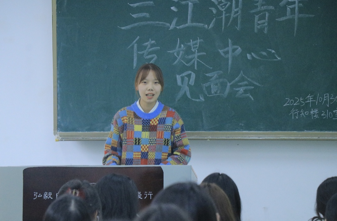 传媒中心主席团成员何欣悦、蒋艺涵、卓玛围绕三江潮的职能定位、团队建设与运营规范作了进一步阐述。她们明确了青年传媒中心的核心职责与平台矩阵布局,并就考察期安排、个人技能提升路径等提出具体阐释,强调纪律意识与团结协作的重要性。针对日常运营中出现的实际问题,主席团特别提出信息及时回复的要求,并重申新闻内容须注重新闻时效性与务实原则。此外,会议还对突发情况下的沟通机制、应急处理方式作了说明。最后,主席团再次强调效率提升的关键作用,鼓励全体成员以更高标准投入后续工作。